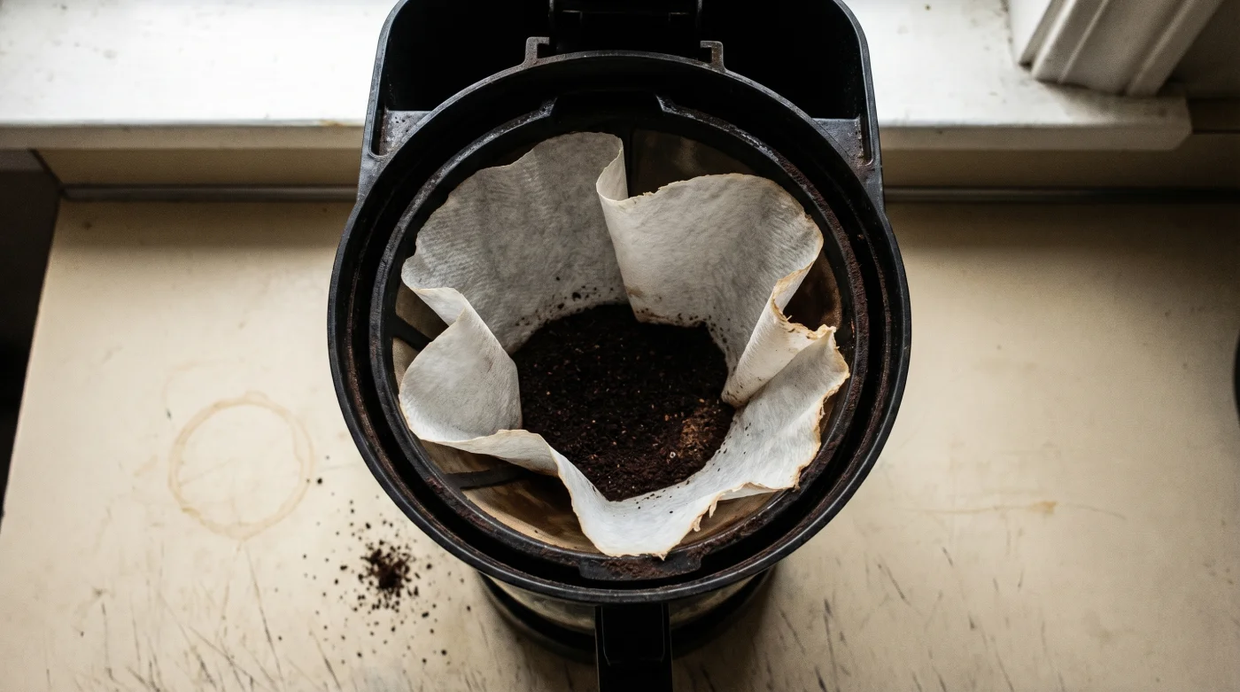 Det är en råkall tisdagsmorgon i november. Frosten ligger som ett vitt lakan över gräsmattan, och i köket hörs det där rosslande, bekanta ljudet av vatten som tvingas upp genom ett plaströr. Din trotjänare till kaffebryggare står på bänken, kalkfläckig och tålmodig. Du känner doften sprida sig. Den är trygg, men samtidigt bär den på en skarp, bränd underton som drar ihop käkarna en aning och lämnar en fadd eftersmak på tungan.