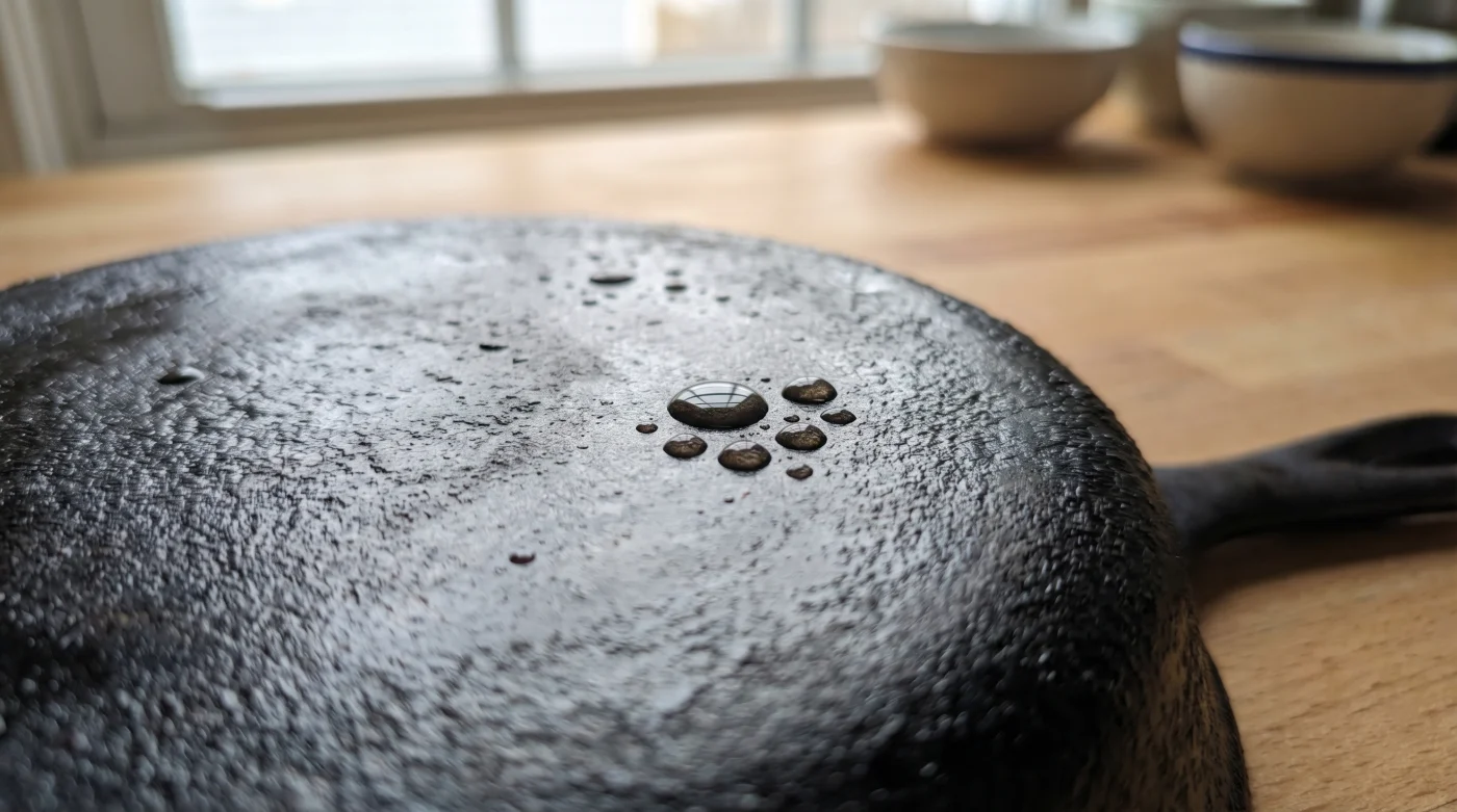 Tänk på din gjutjärnspanna nästan som ett levande material, eller kanske mer exakt, som lacken på en veteranbil. Den svarta, glansiga ytan som gör att frukostäggen inte fastnar är faktiskt inte metall. Det är ett lager av polymeriserat fett – mikroskopiska lager av olja och smör som genom värme har bakats in i järnets porer och skapat en stenhård sköld.